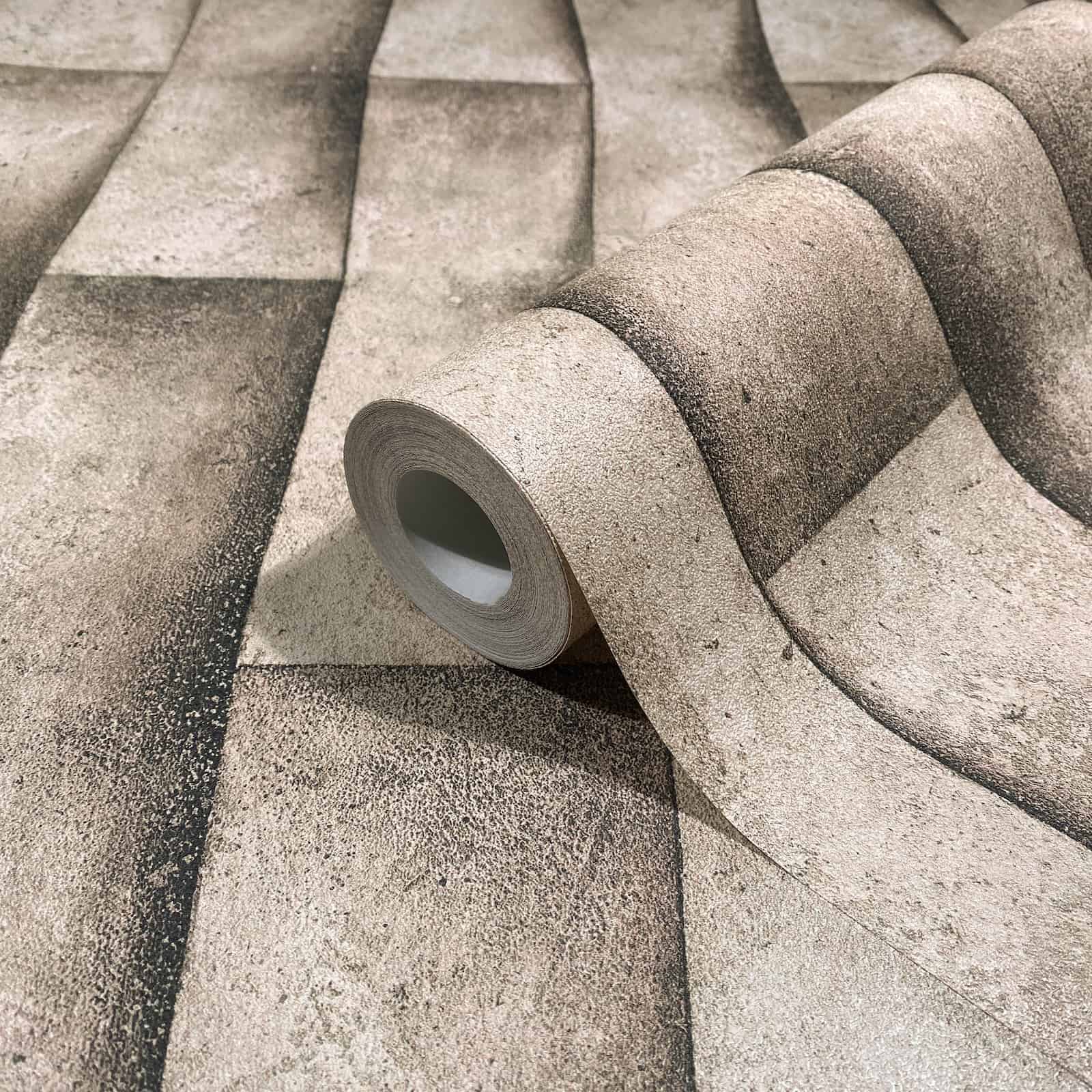 Vliestapete 3D-Effekt Streifen Putzoptik Beige Grau 81648