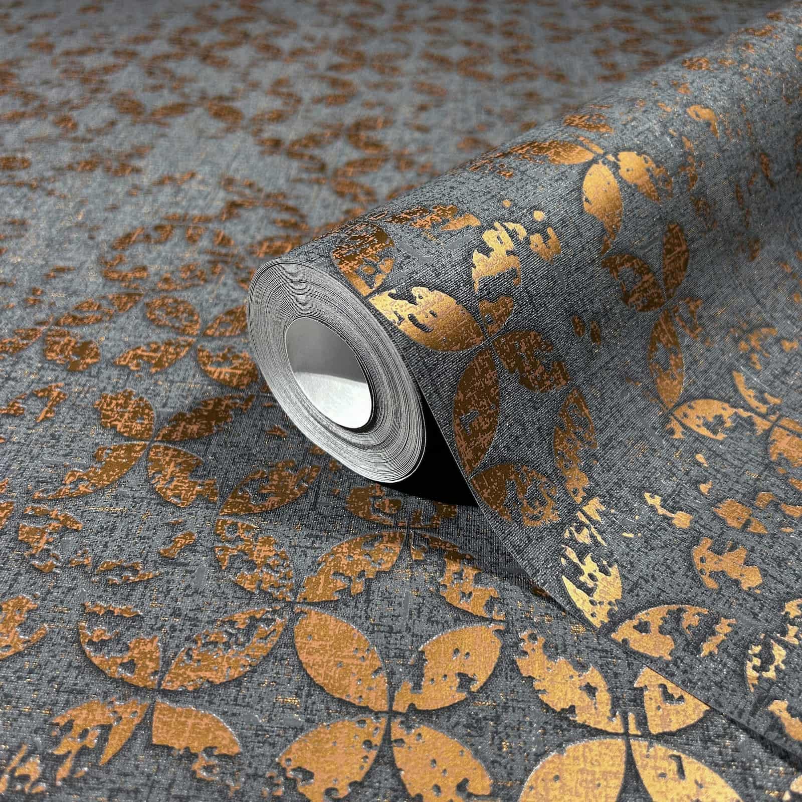 Vliestapete Kreise Shabby Anthrazit Kupfer Metallic 35119