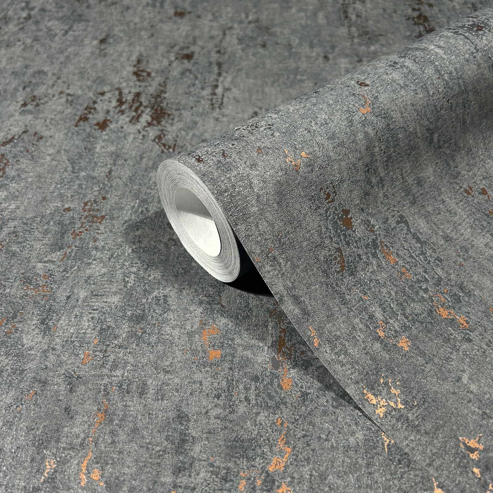 Vliestapete Putzoptik Anthrazit Kupfer Metallic 35146