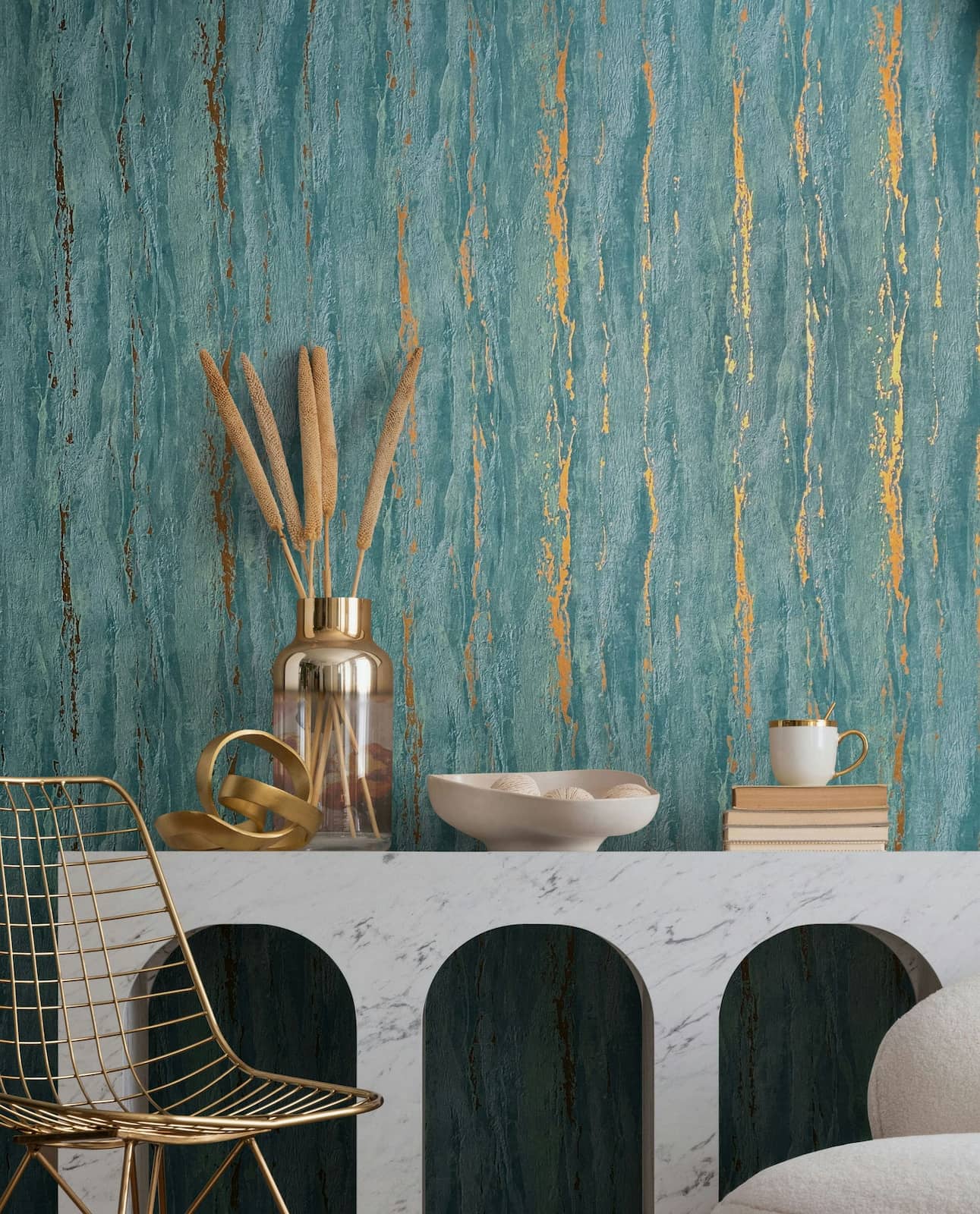 Vliestapete Shabby Industrial Türkis Gold Metallic 35167