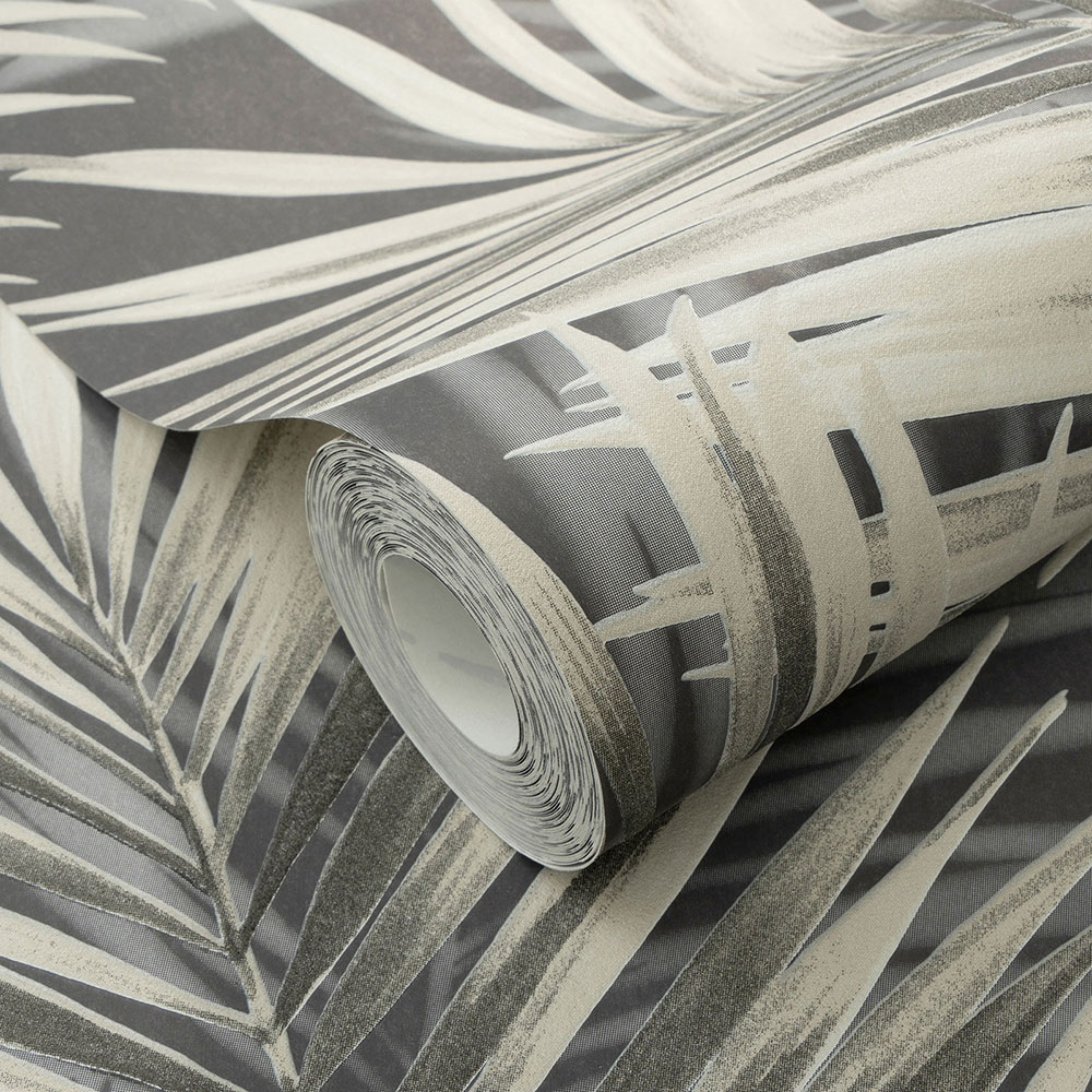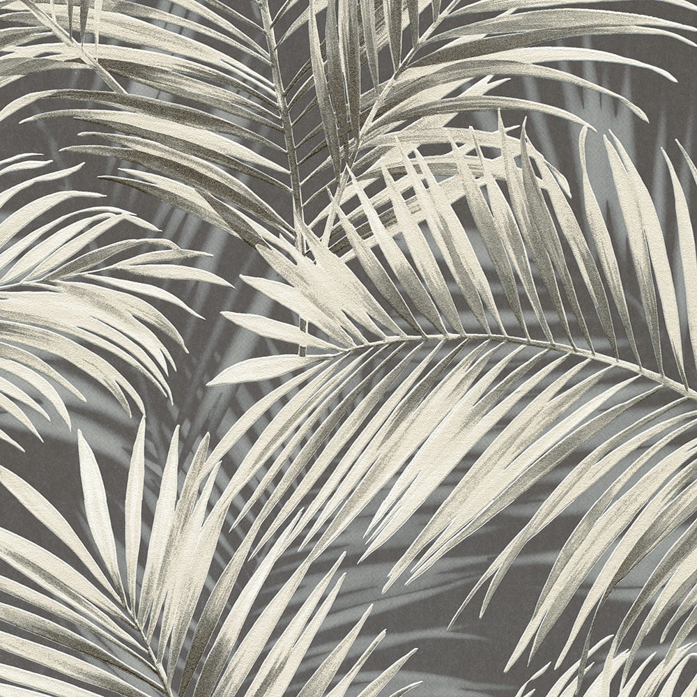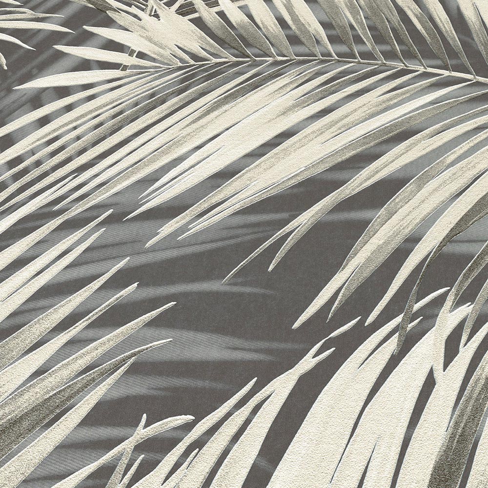 Vliestapete Tropisch Blätter Dunkelgrau Creme 10531-15