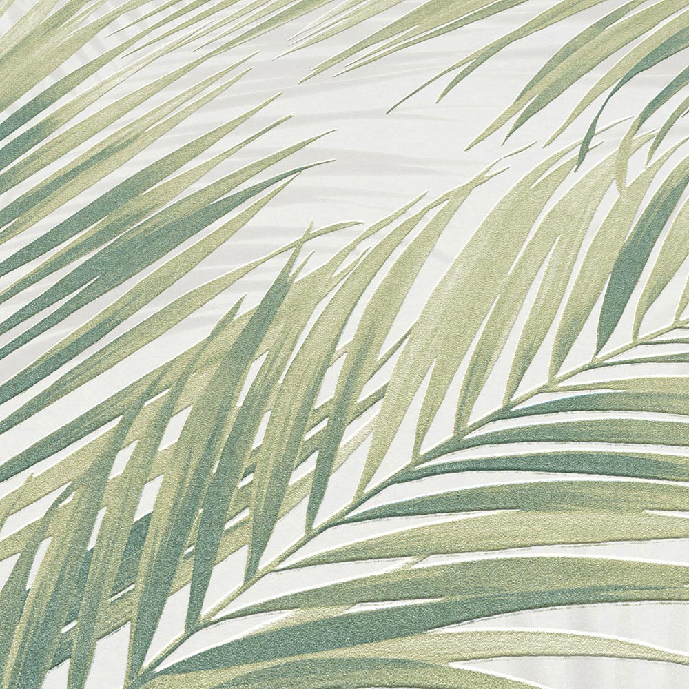 Vliestapete Tropisch Blätter Weiß Grün 10531-07