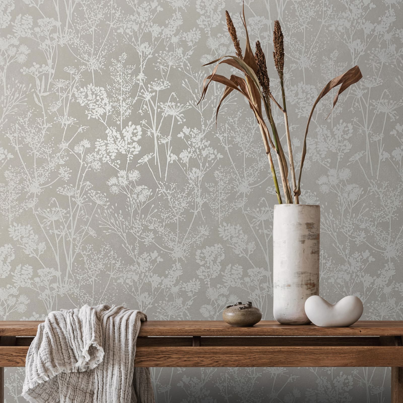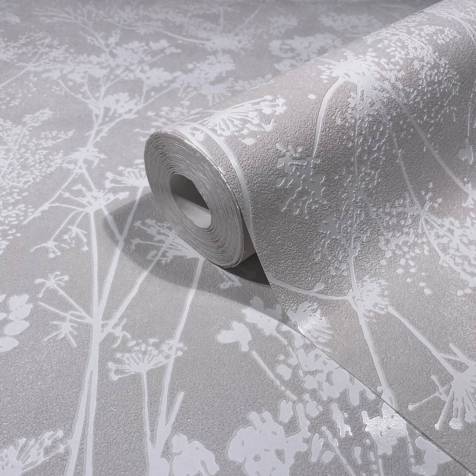 Vliestapete Wildblumen Skandi Grau Weiß Glanz 82464